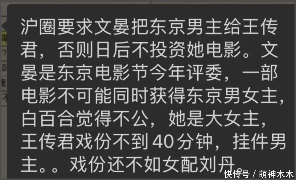 不过也有网友认为,白百何本来一开始就没扯王传君和文晏。还有网友觉得,白百何只是没有明说,导演和制片人孤立她,拿她当垫脚石,那么最终获益的是谁?这次东京电影节《春树》分别获得最佳导演和最佳男主,所以当然是导演和男主啦,不然暗搓搓支开她干嘛?